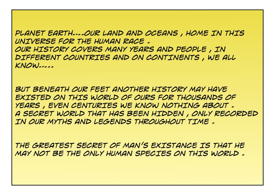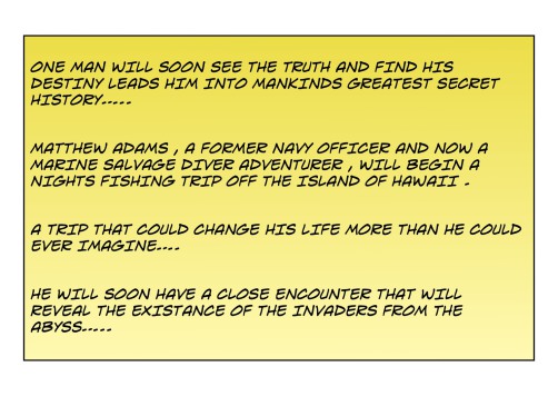 However a lot of the preparations work was then regrouped and I started writing again...after seeing some old TV episodes of Stingray , Voyage to the Bottom of the Sea and James Cameron's THE ABYSS movie my ideas started to go towards the creation of an undersea adventure idea.....people from under the sea living there from Earth's past in secret.....